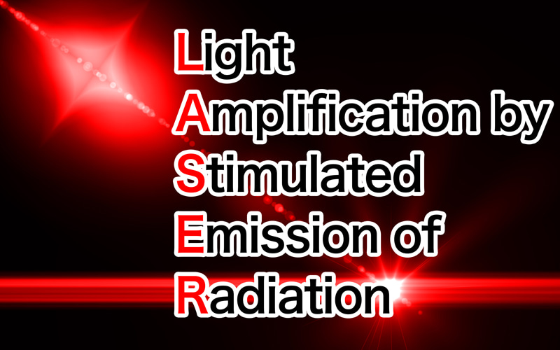 レーザー(Laser)は、Light Amplification by Stimulated Emission of Radiation(誘導放出による光の増幅)の頭文字をとった略語で、特定の単一波長を持つ、指向性の高い強力な光を人工的に作り出す技術や装置のことである。